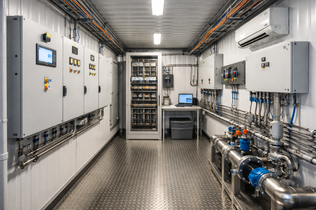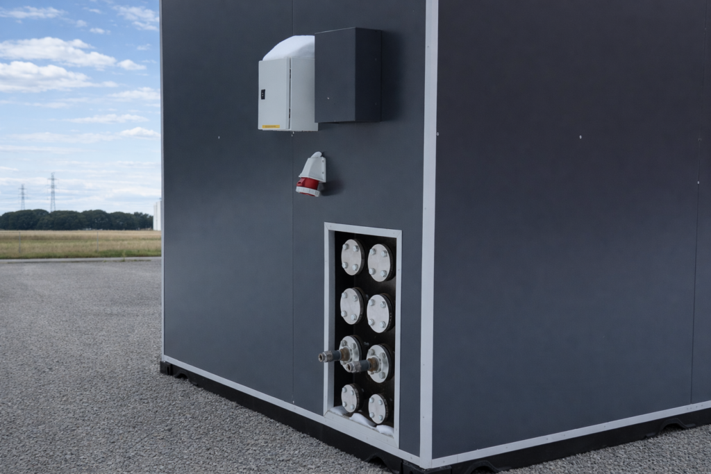 Mēs piegādājam pilnībā sagatavotu konteineru — ar izolāciju, elektroinstalāciju, iekšējo apdari un plānojumu — gatavu jūsu inženiertehnisko sistēmu uzstādīšanai.